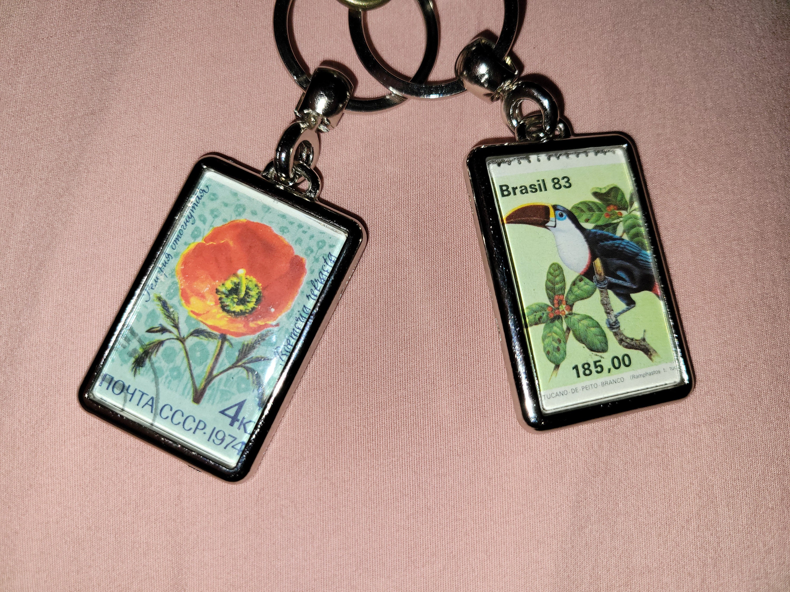 • A real used vintage stamp is captured in the keyring casing, issued in the Soviet Union circa 1974