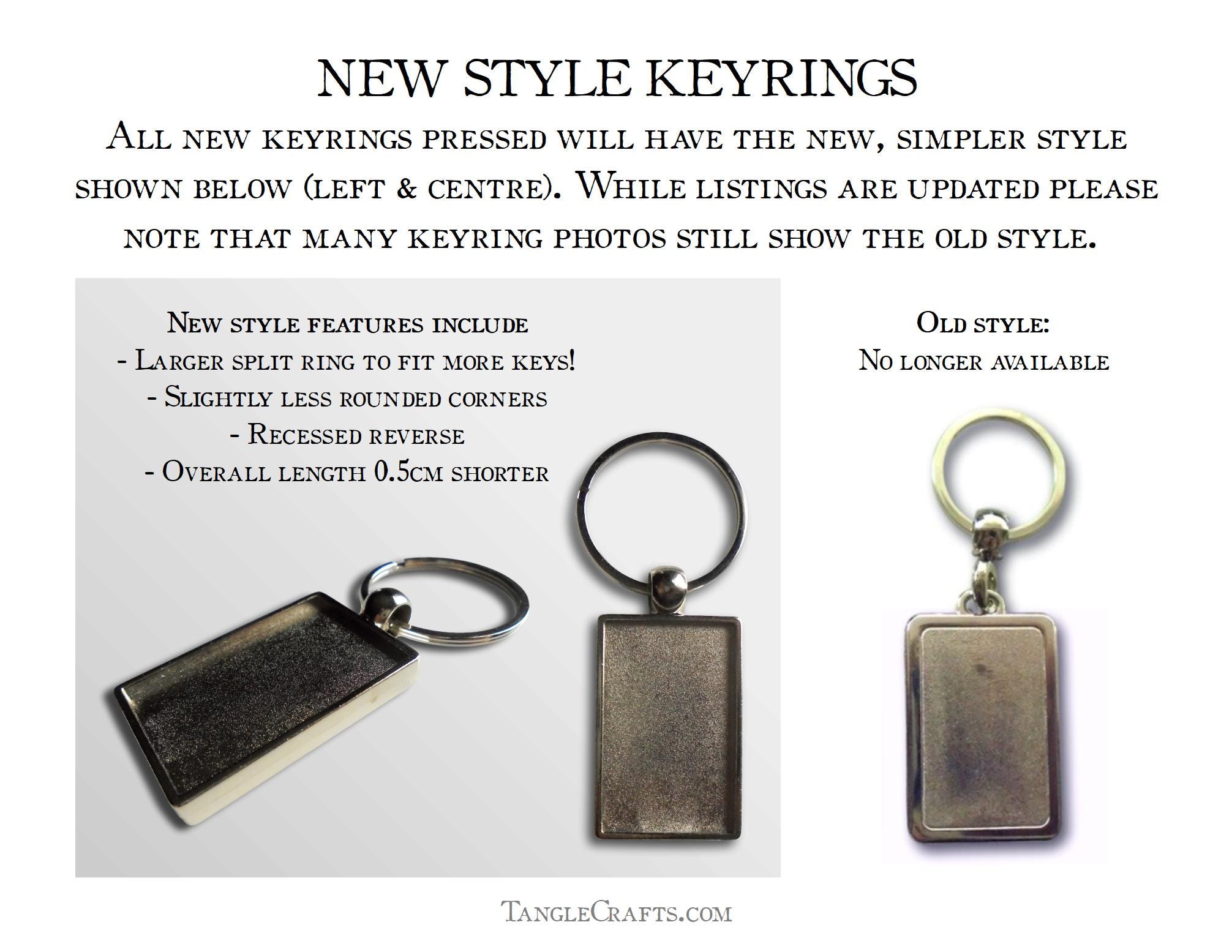 • My original keyring frame has been replaced by a slightly different style - see pic 2 for details (this style will be used for all new keyring pressings)