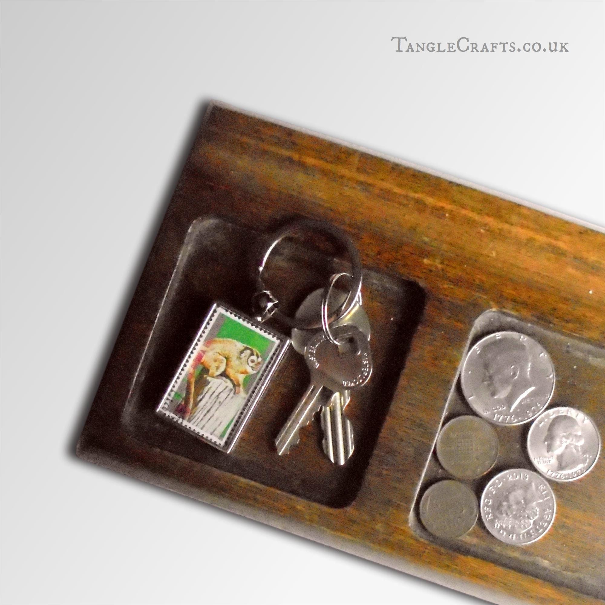 • A real used vintage stamp is captured in the keyring casing, issued in Equatorial Guinea circa 1975