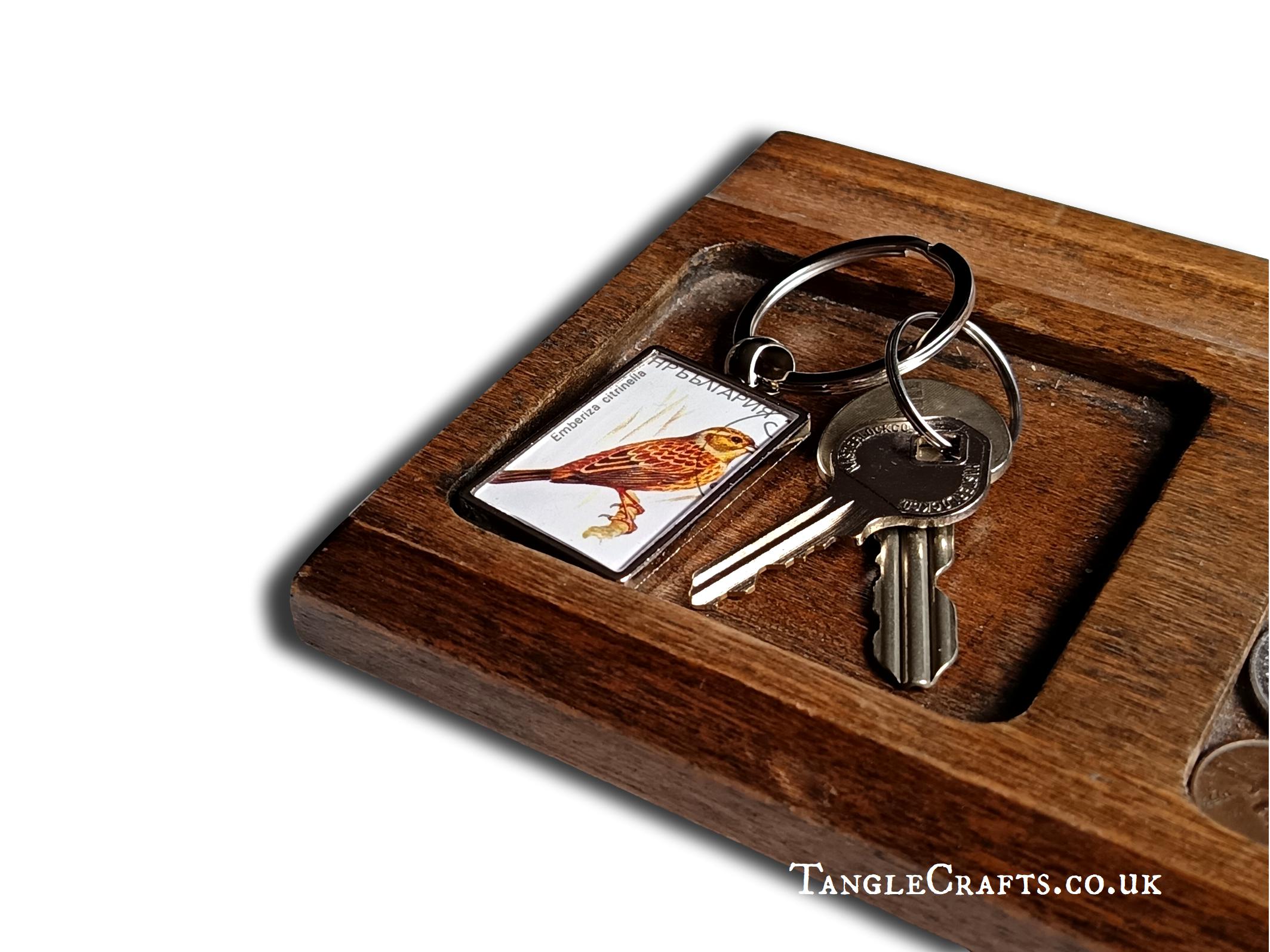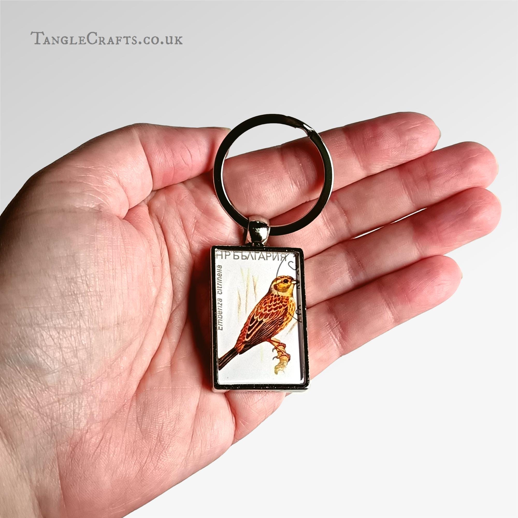 This lovely yellowhammer keyring is made with a real upcycled postage stamp from the 1980s - a unique gift for any bird loving stamp collector, letter writer, or nostalgic traveller. Please read on for full details: