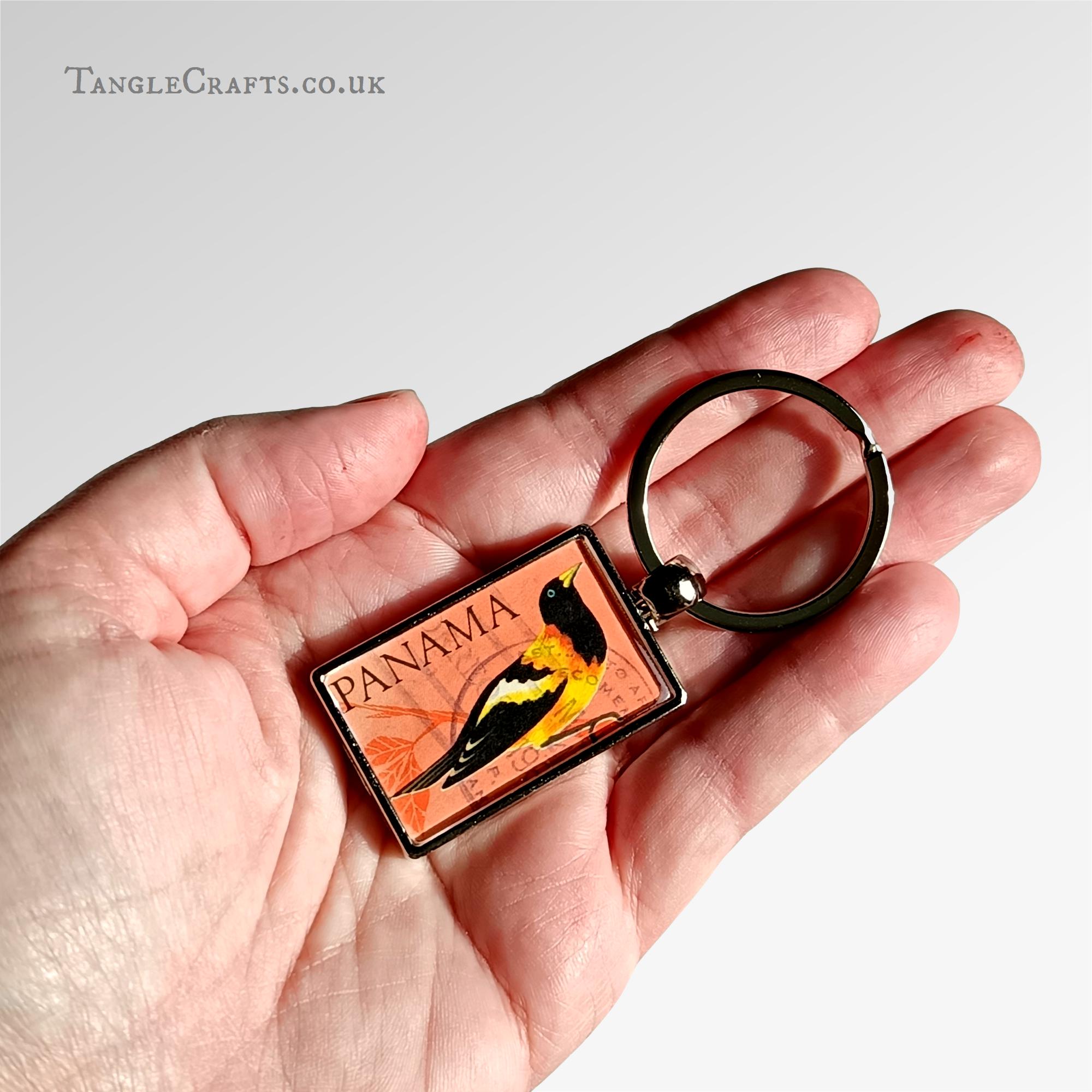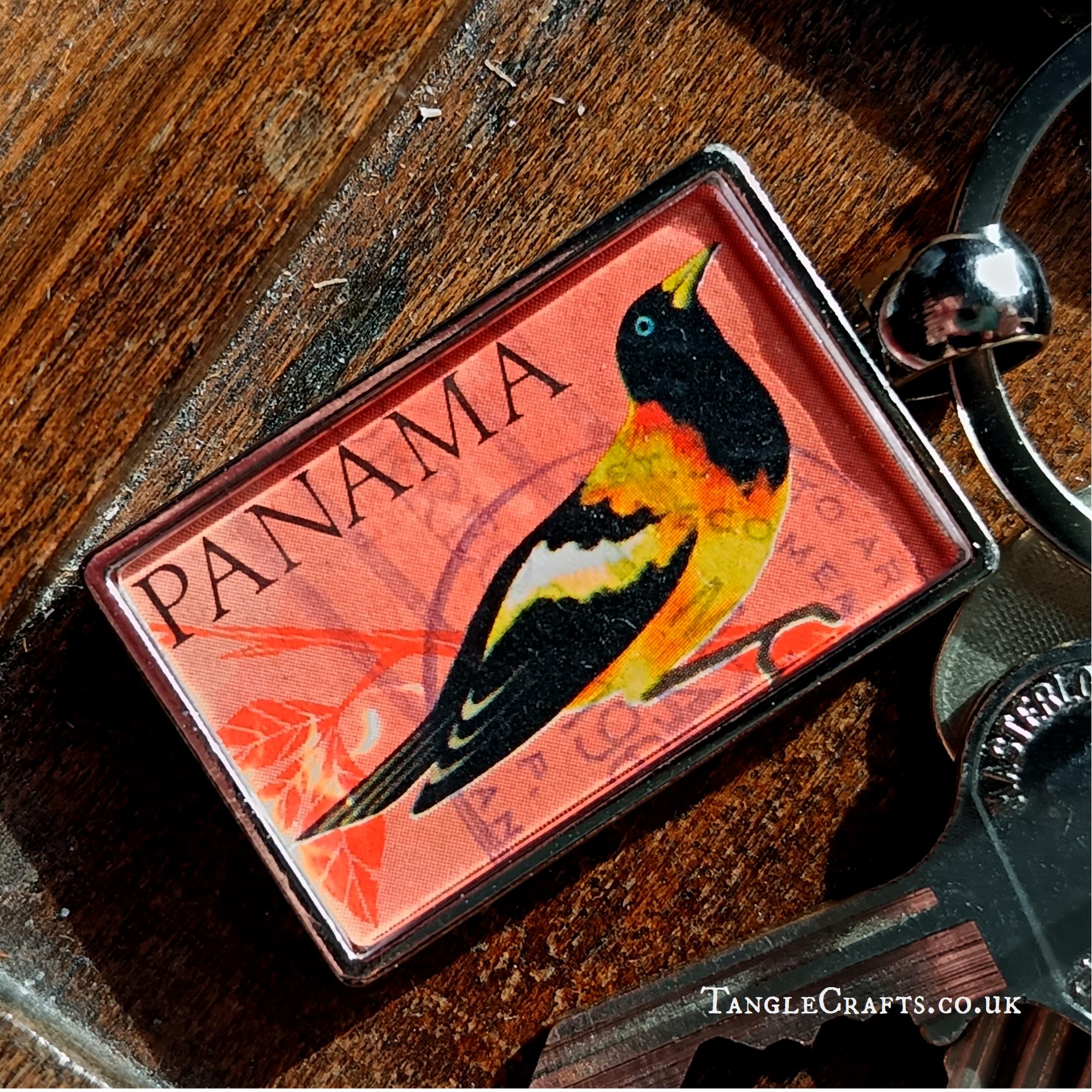 • A genuine vintage stamp is captured in the keyring casing, issued by Panama in 1965