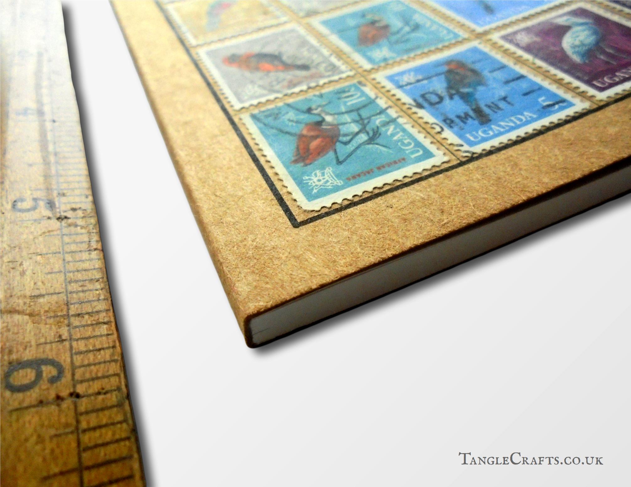 * Stamps are glued into place with an acid-free, xylene-free adhesive then topped with a matt sealant for extra protection