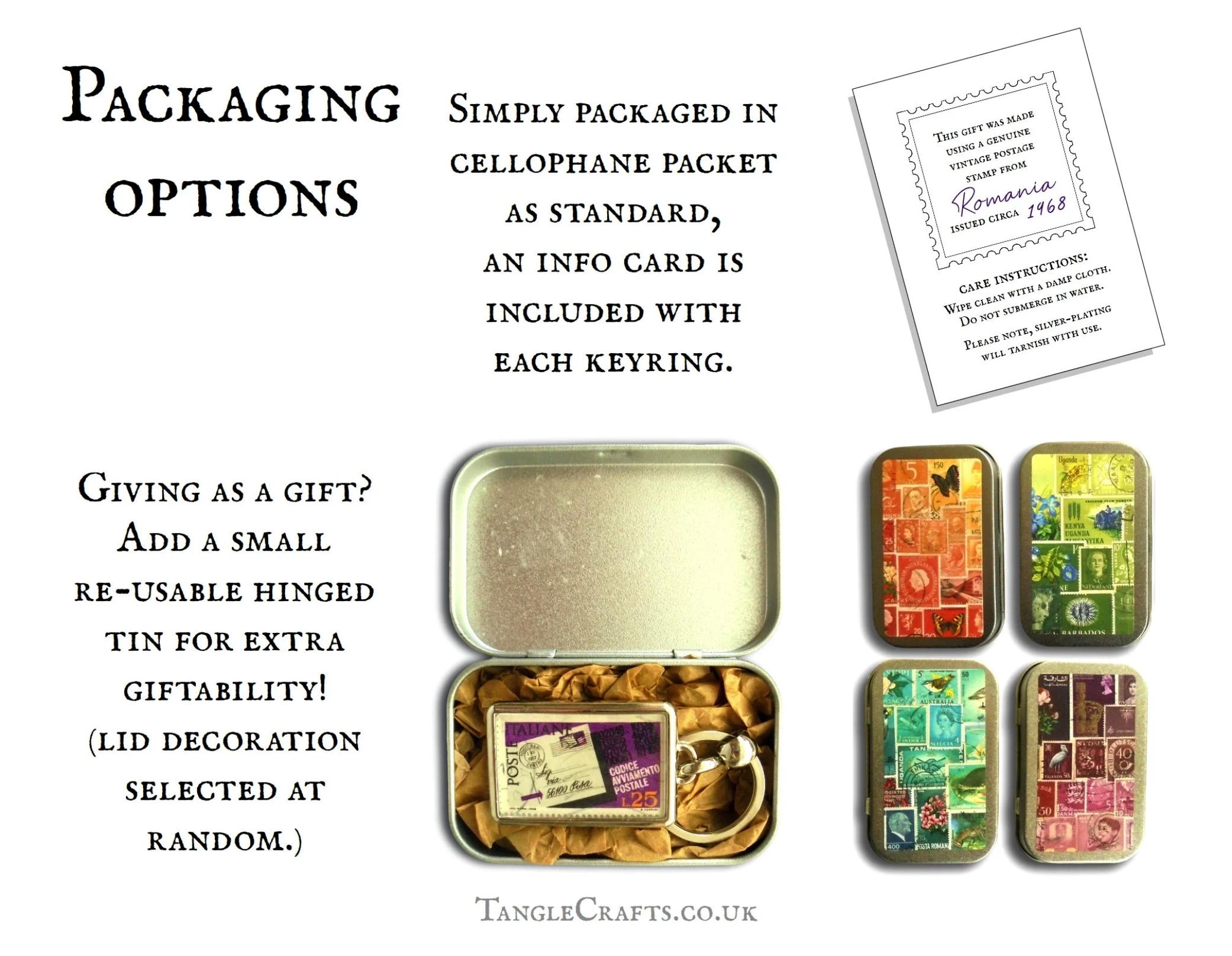 • Each keyring comes with a small card which provides details of the feature stamp's country of origin & date of issue along with basic care instructions