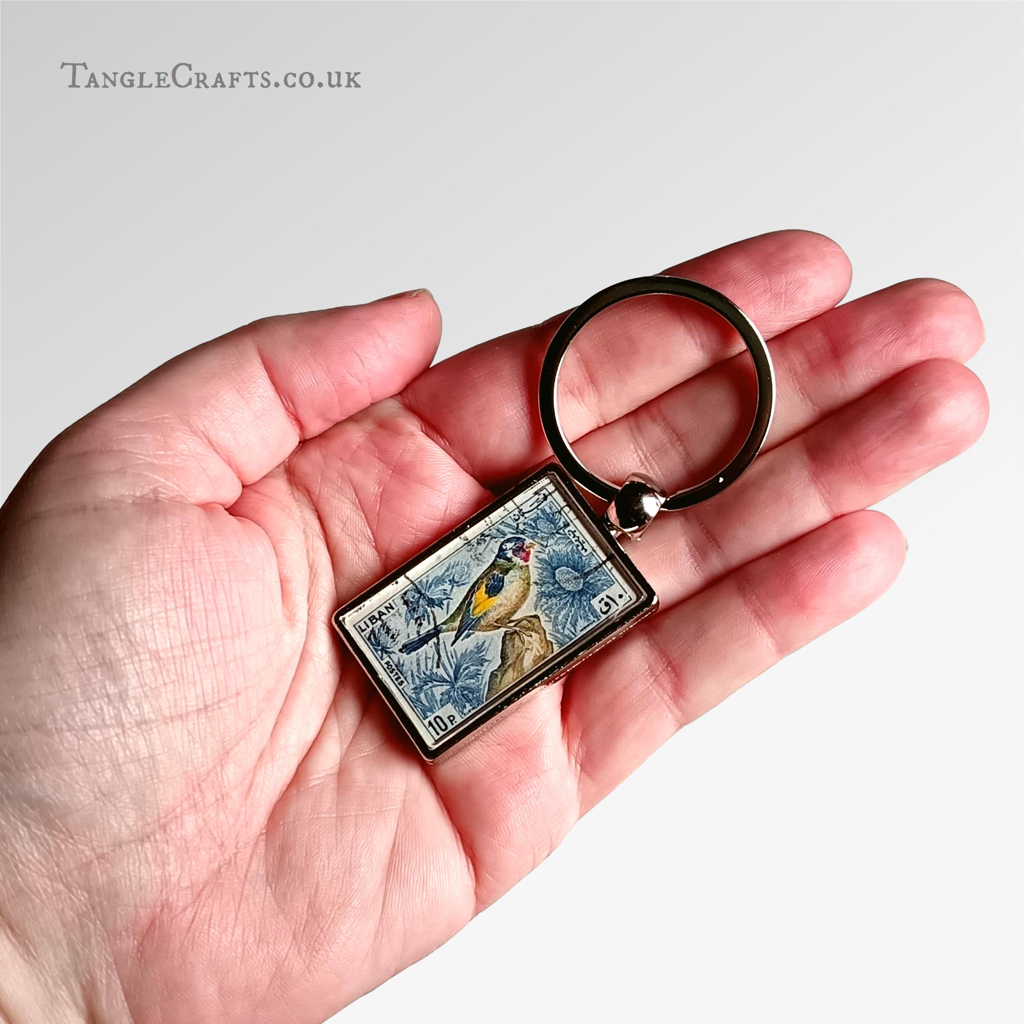 This charming goldfinch keyring is made by upcycling a genuine vintage postage stamp from the 1960s. Encapsulating a genuine fragment of postal history it makes a uniquely original yet practical gift, full of character and charm. Perfect for any bird loving stamp collector, letter writer, or nostalgic traveller... Please read on for full details:
