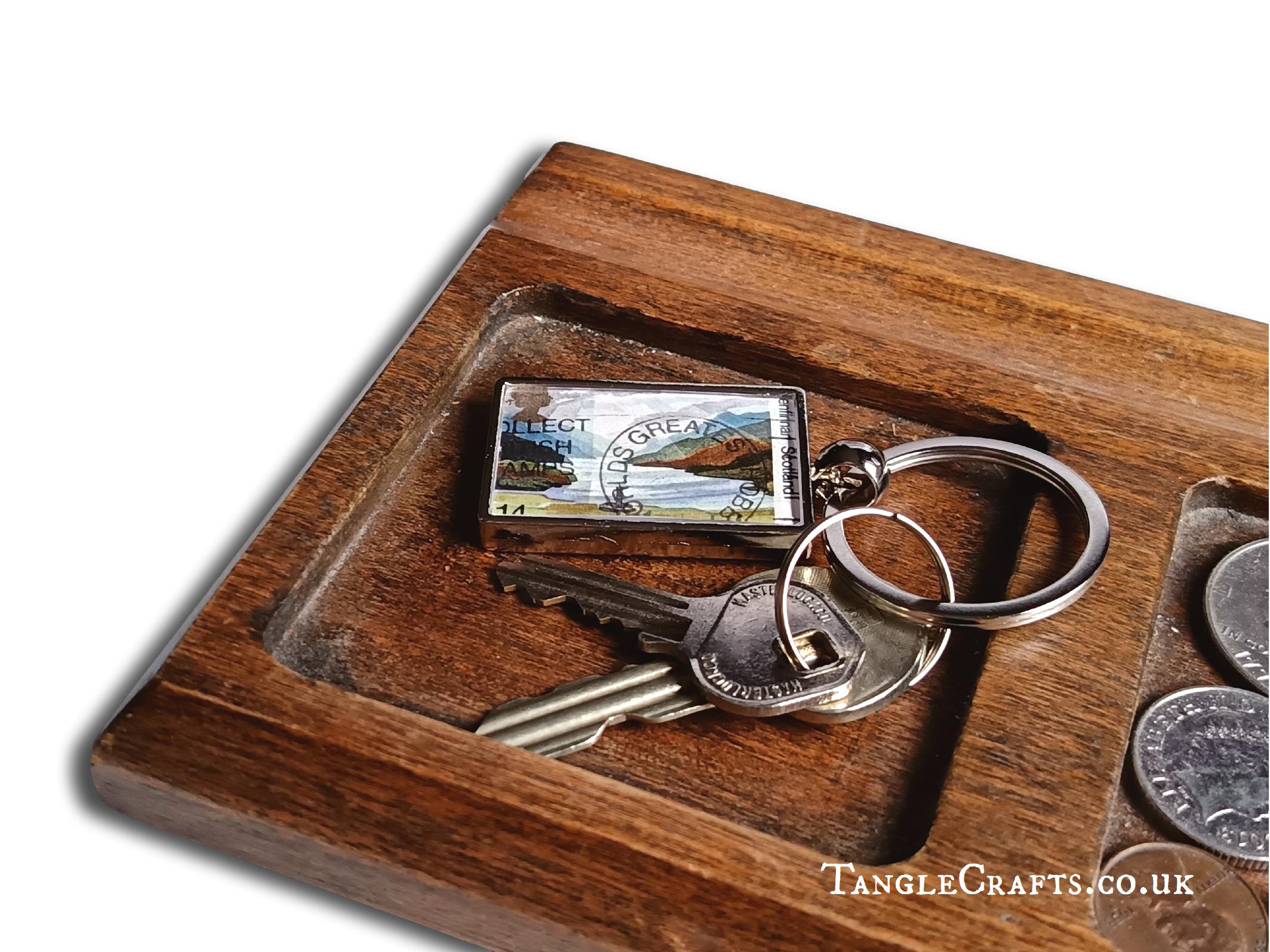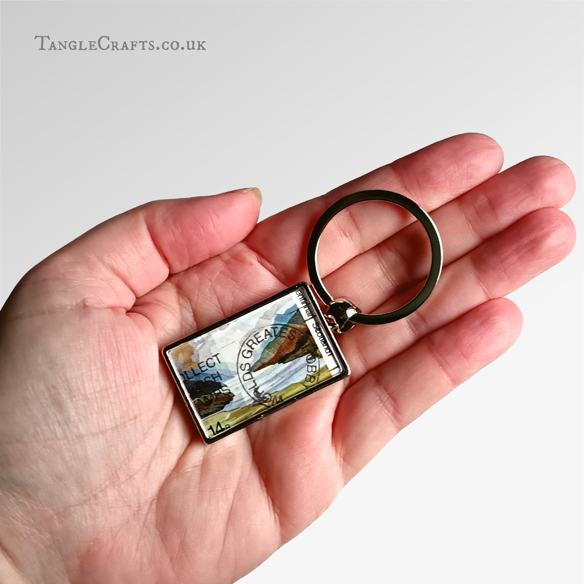 This atmospheric landscape keyring is made by upcycling a real postage stamp from the 1980s - the perfect gift for any lover of nature and philately! The sturdy metal keychain encapsulates a genuine fragment of British postal history, just for you. Please read on for full details: