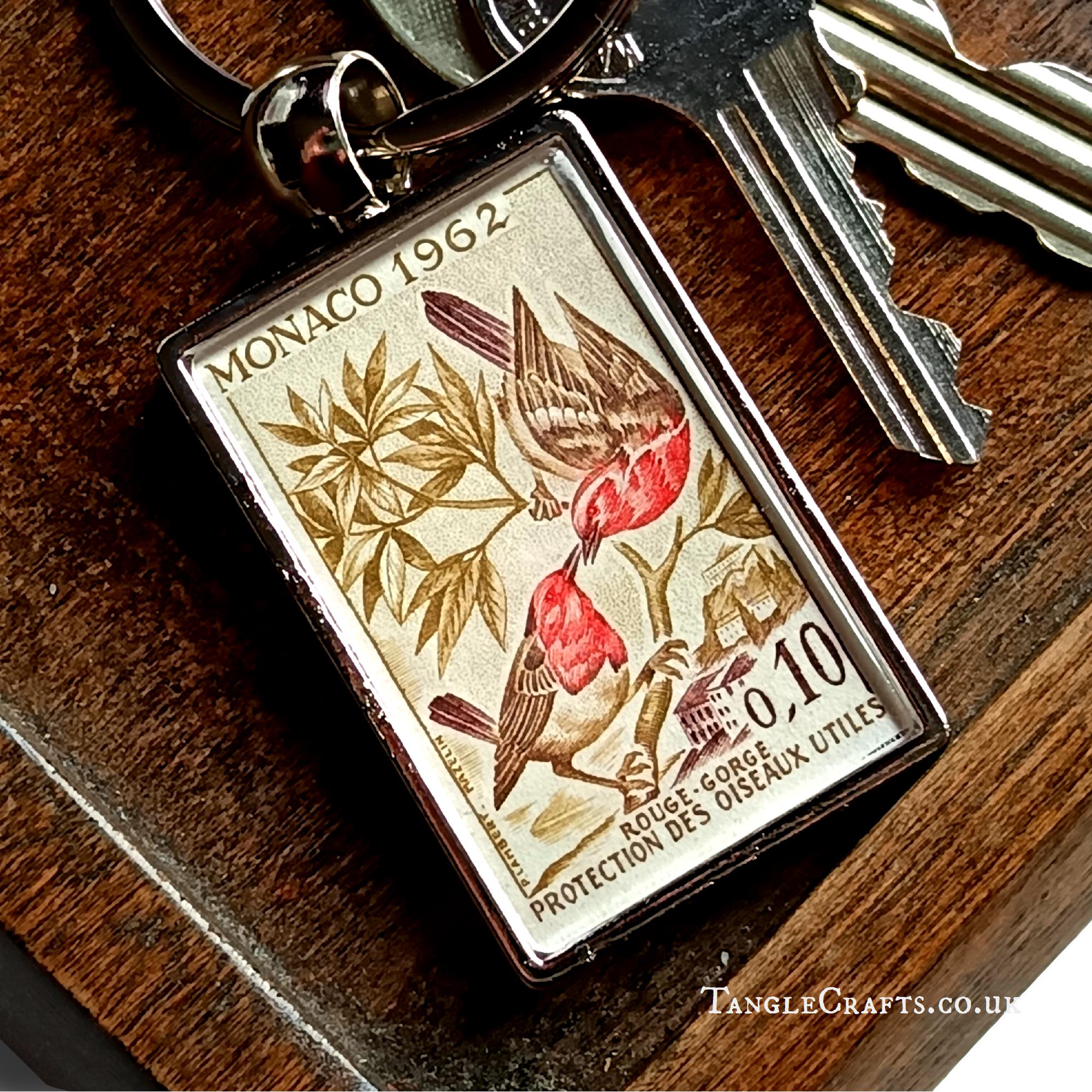 • A real vintage stamp is captured in the keyring casing, issued in Monaco circa 1962