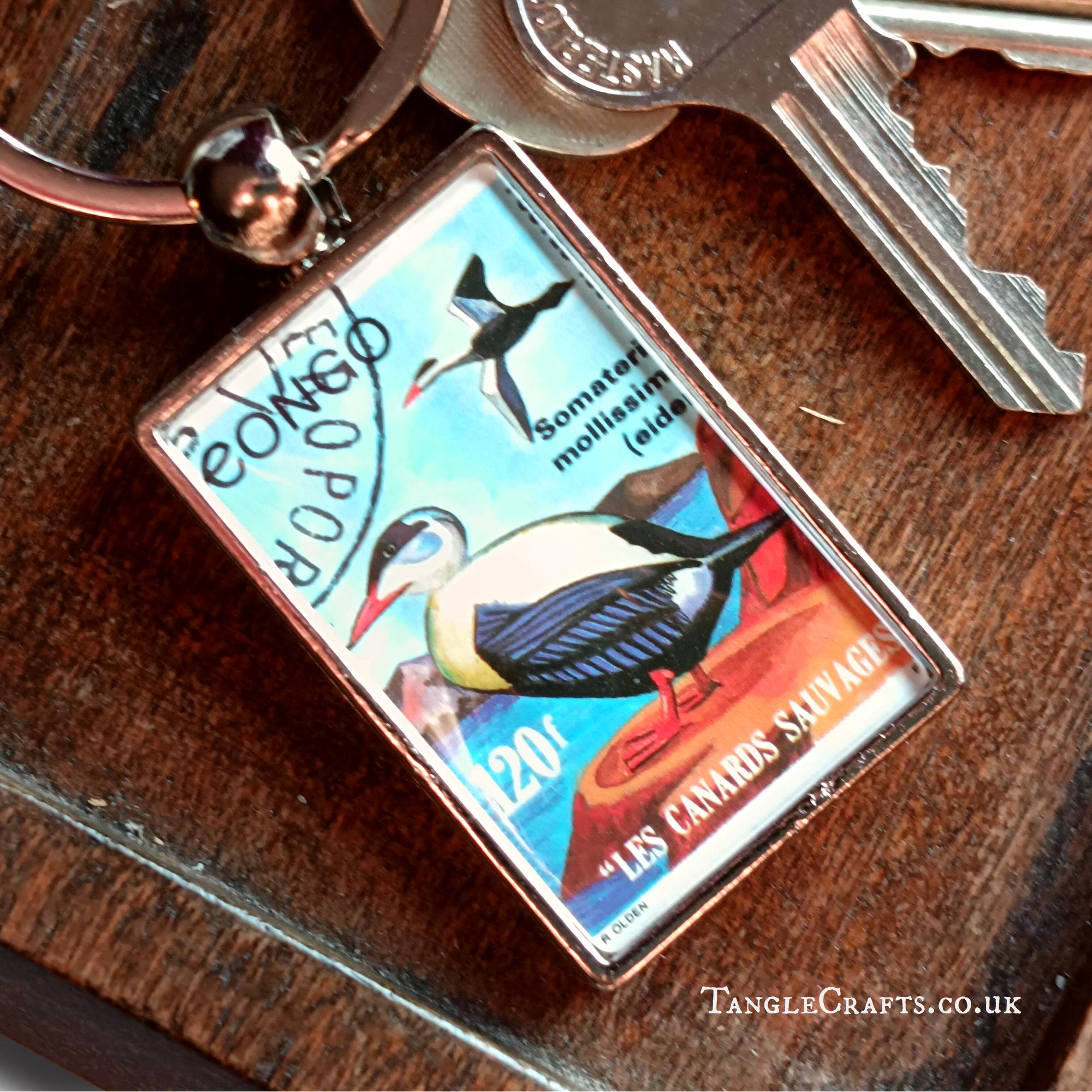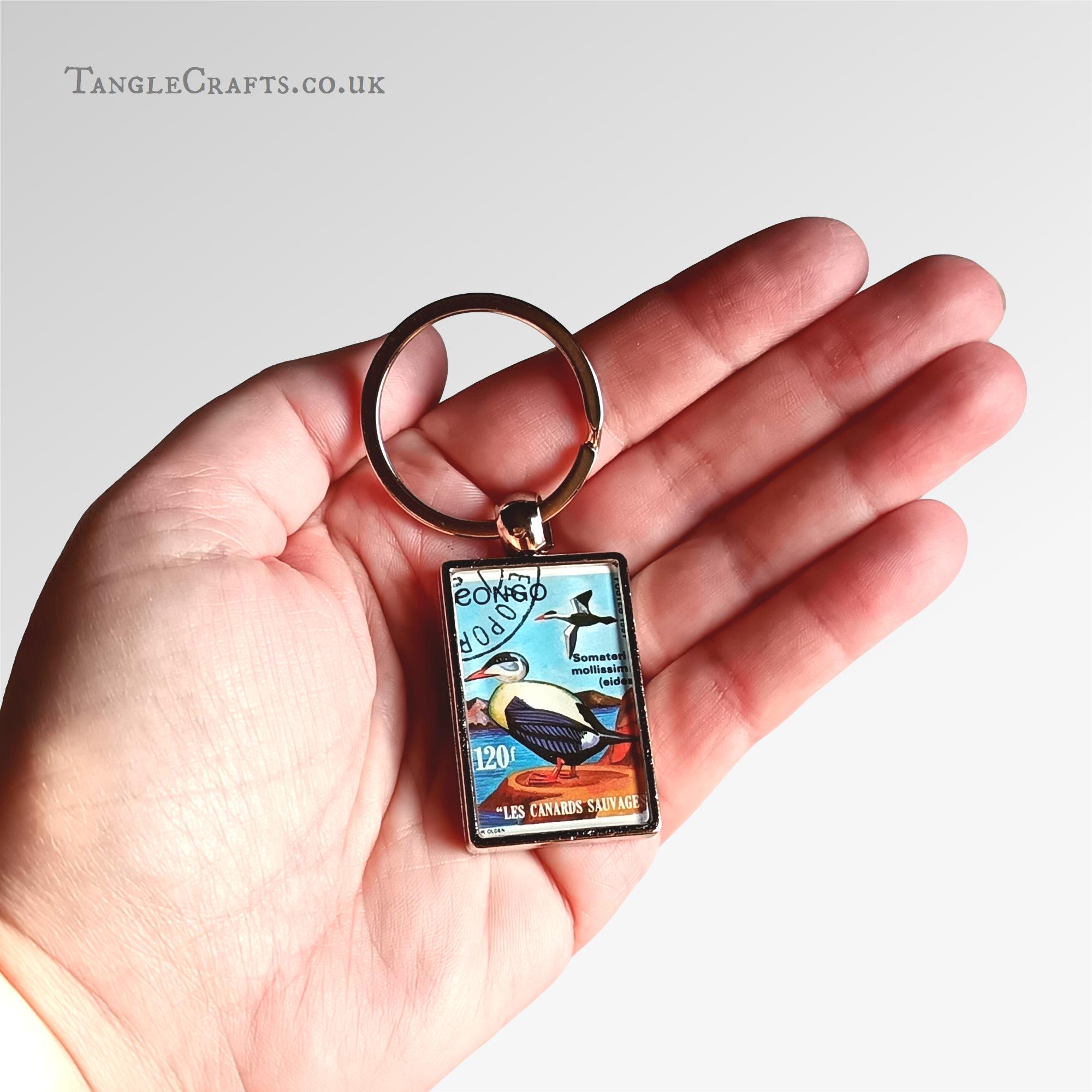 This wild duck keyring is made by upcycling a real 1990s postage stamp from the Congo, encapsulating a genuine fragment of postal history. A fun and functional gift for any bird loving stamp collector, letter writer or nostalgic traveller. Please read on for full details.