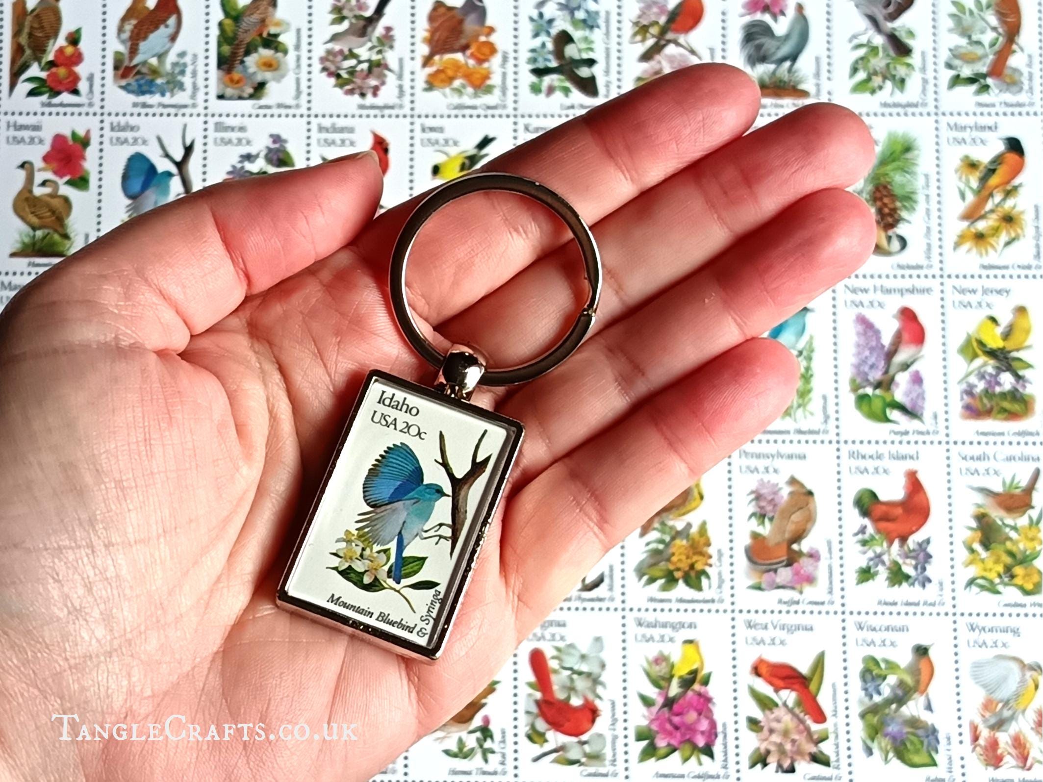 • The stamp is one of a series of 50 celebrating the official bird & flower for each state. All states in this series are available on request, so if you don't see the state keyring you're looking for in my shop, please just ask!