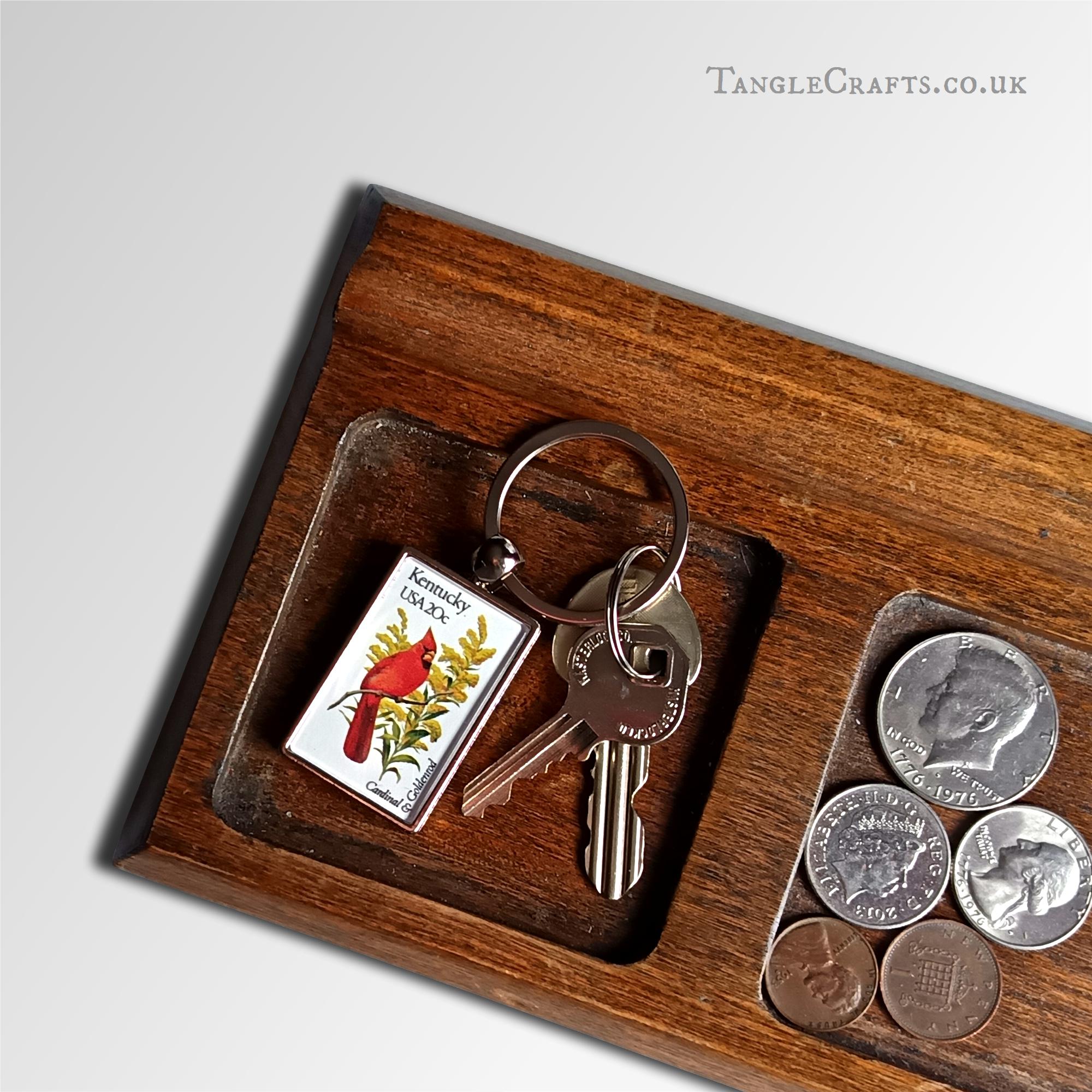 • A real vintage stamp is captured in the keyring casing, issued in the USA circa 1982