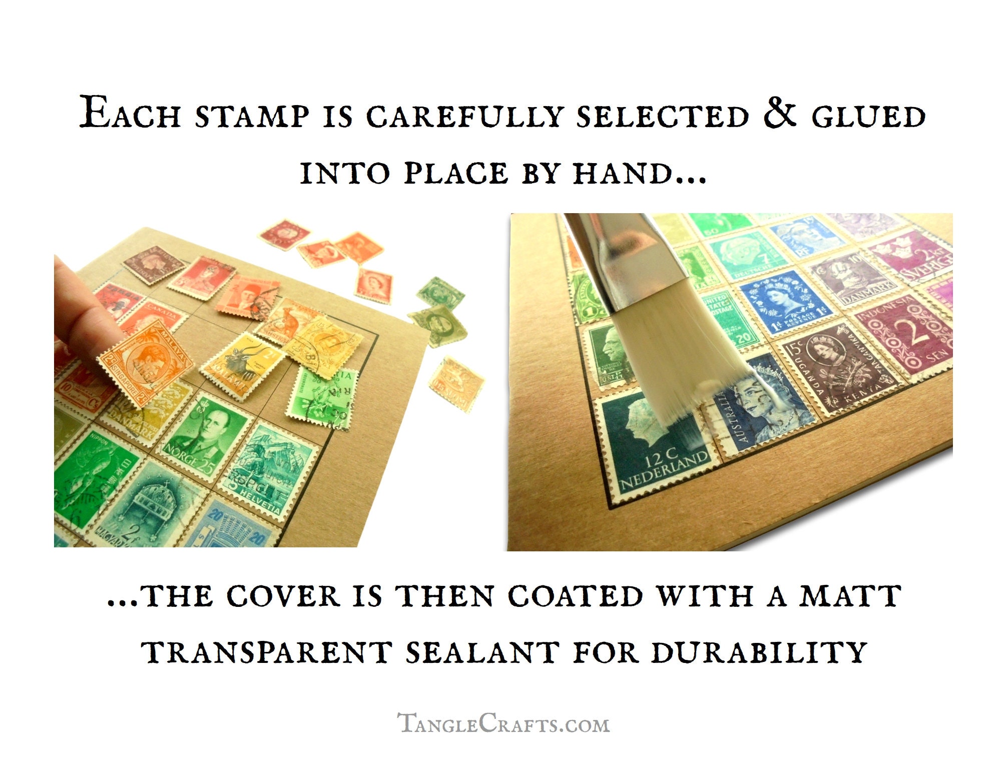 ...are welcome! Would you like a notebook similar to this one but featuring stamps from a different country, or focused on a particular colourway? Please ask - I will be happy to customise a new notebook, just for you.