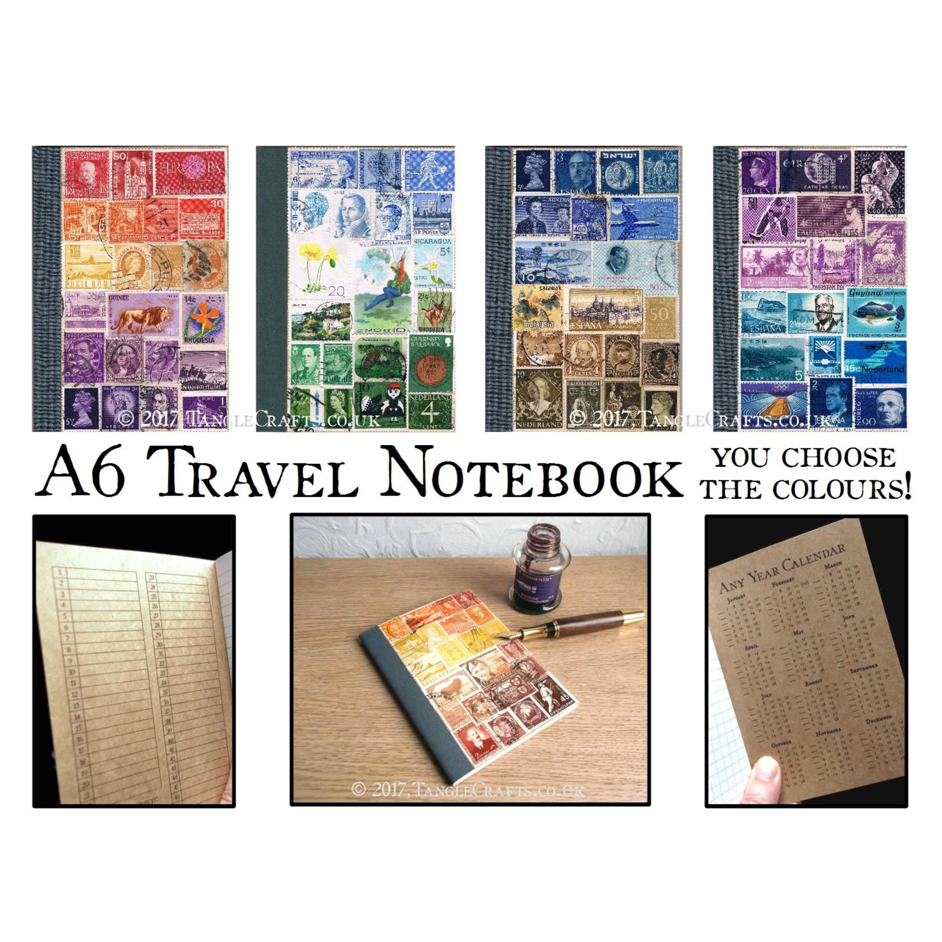 * Front cover will be collaged with a blend of vintage postage stamps, in your choice of colours - notebooks shown are examples only: a new notebook will be collaged just for you!