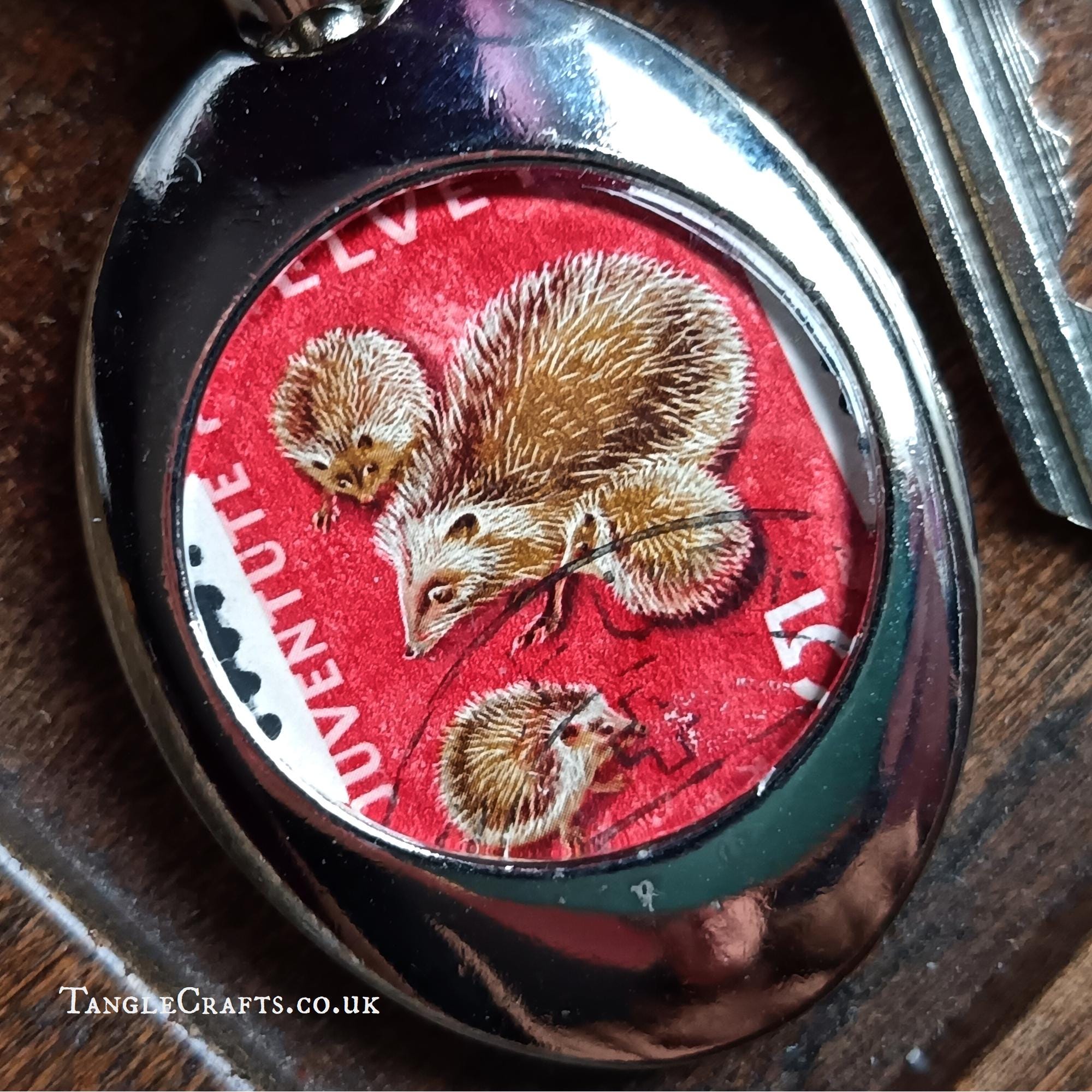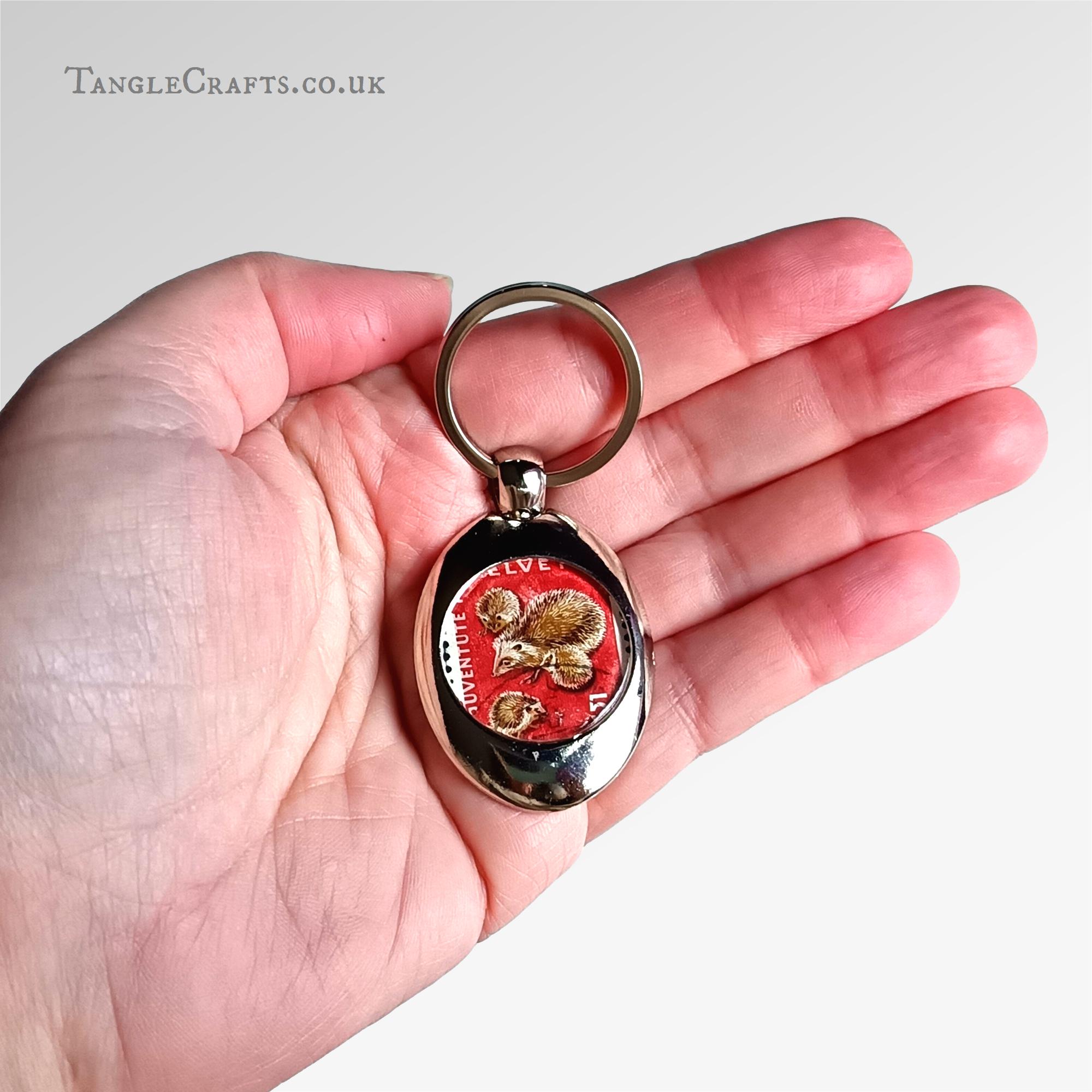 This unique & multifunctional hedgehog keyring is made with a real vintage postage stamp - the perfect gift for any wildlife-loving philatelist. The sturdy metal keychain doubles up functionality with a handy trolley coin on the reverse, so it is twice as useful! Please read on for full details: