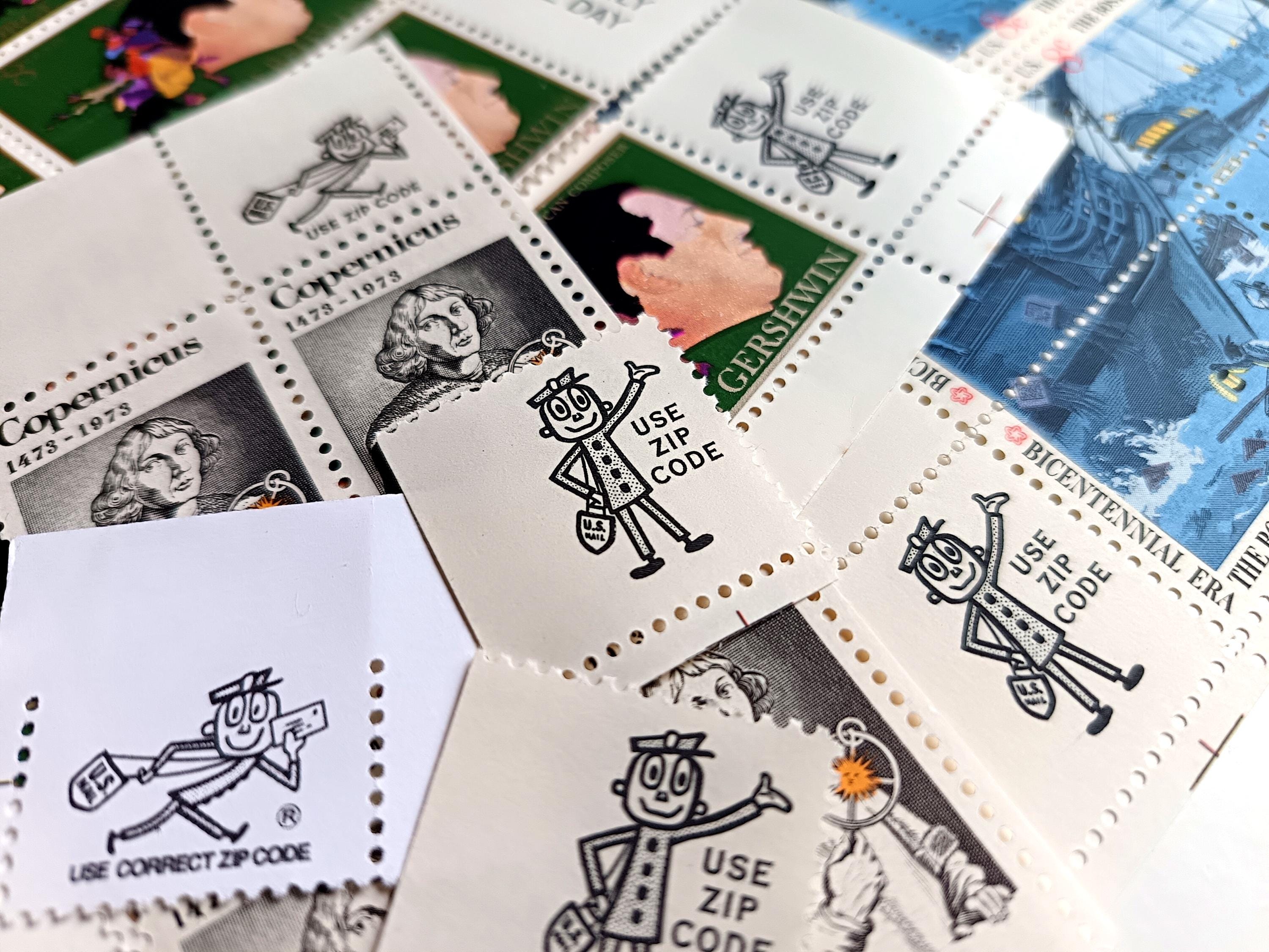• Mr Zip was a USPS character designed to promote correct use of zip codes between 1963 & 1986 (he was resurrected in 2013 but I am only using the older versions). If you select the 'Any Mr Zip' option from the drop-down menu, your little piece of ephemera could be from any time within the period of 1963 to 1986.
