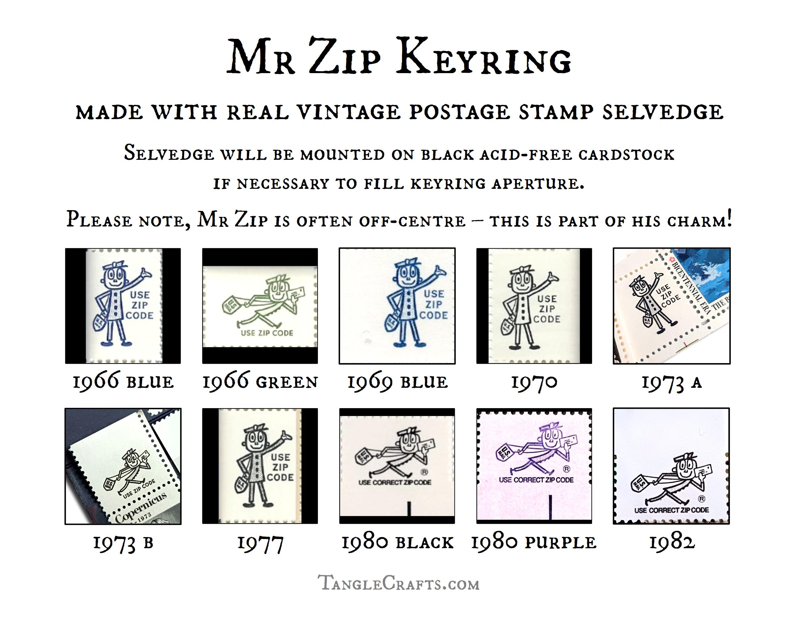 Made using the Mr Zip character found on US postage stamp selvedge from the 1960s-1980s, this keyring (or zipper pull/handbag charm) is a fun & quirky upcycled accessory for any philatelist or letter writer! Please read on for full details:
