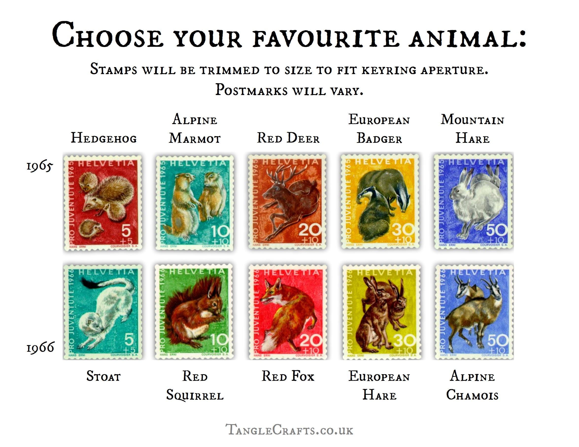 Choose a keyring decorated with your favourite wild animal postage stamp - the perfect gift for any wildlife-loving philatelist. Encapsulating a genuine fragment of vintage Swiss postal history on the front, the sturdy metal keychain doubles up functionality with a handy trolley coin on the reverse, so it is twice as useful! Please read on for full details:
