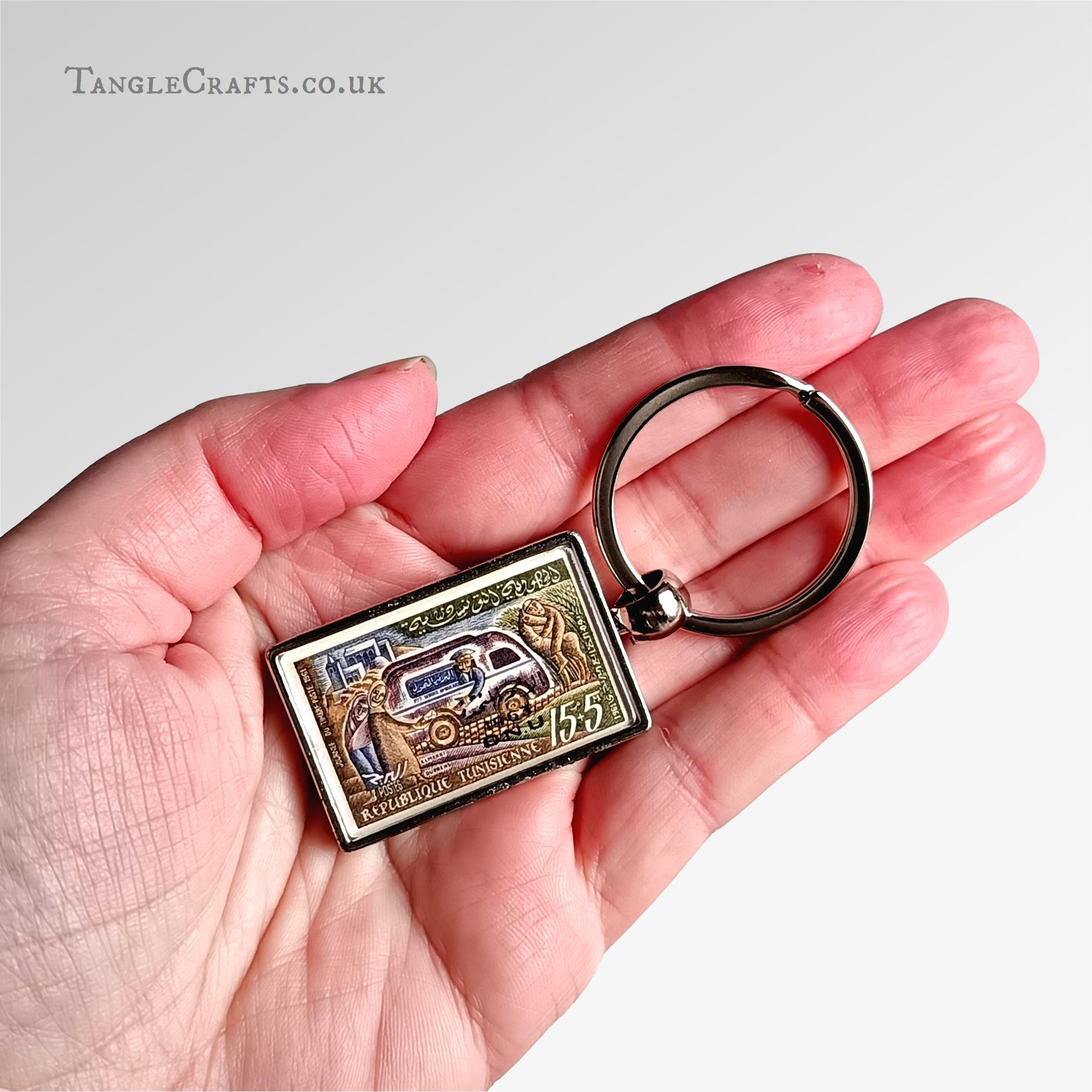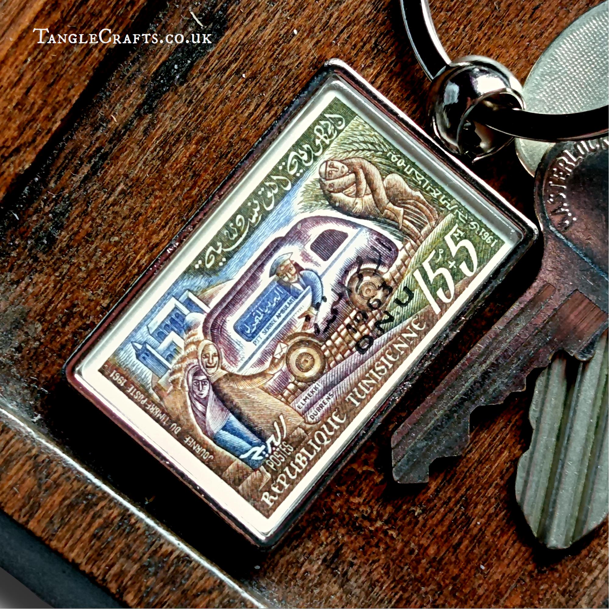 • A real vintage stamp is captured in the keyring casing, issued in Tunisia circa 1961