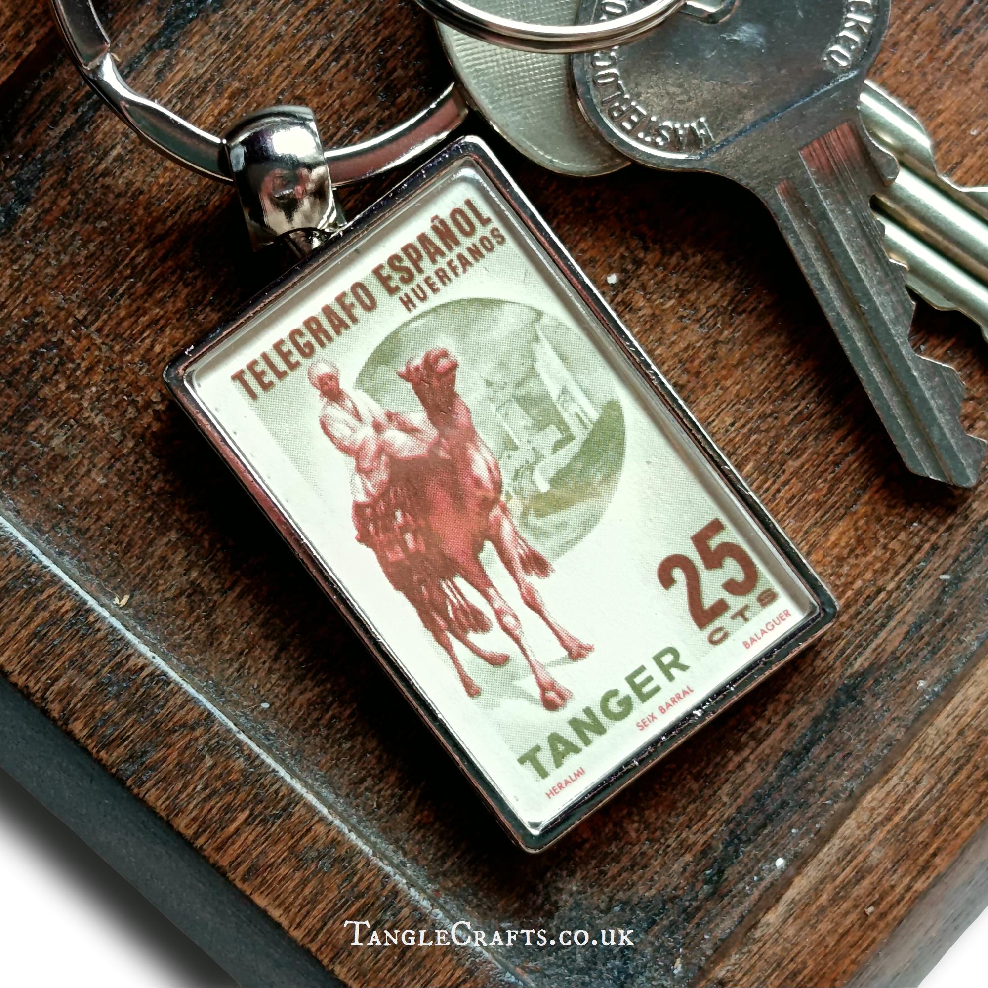 This lovely camel keyring is made by upcycling a vintage charity stamp issued in 1950s Tangier. Treat yourself to this fun & ecofriendly gift full of history and character! Please read on for full details:
