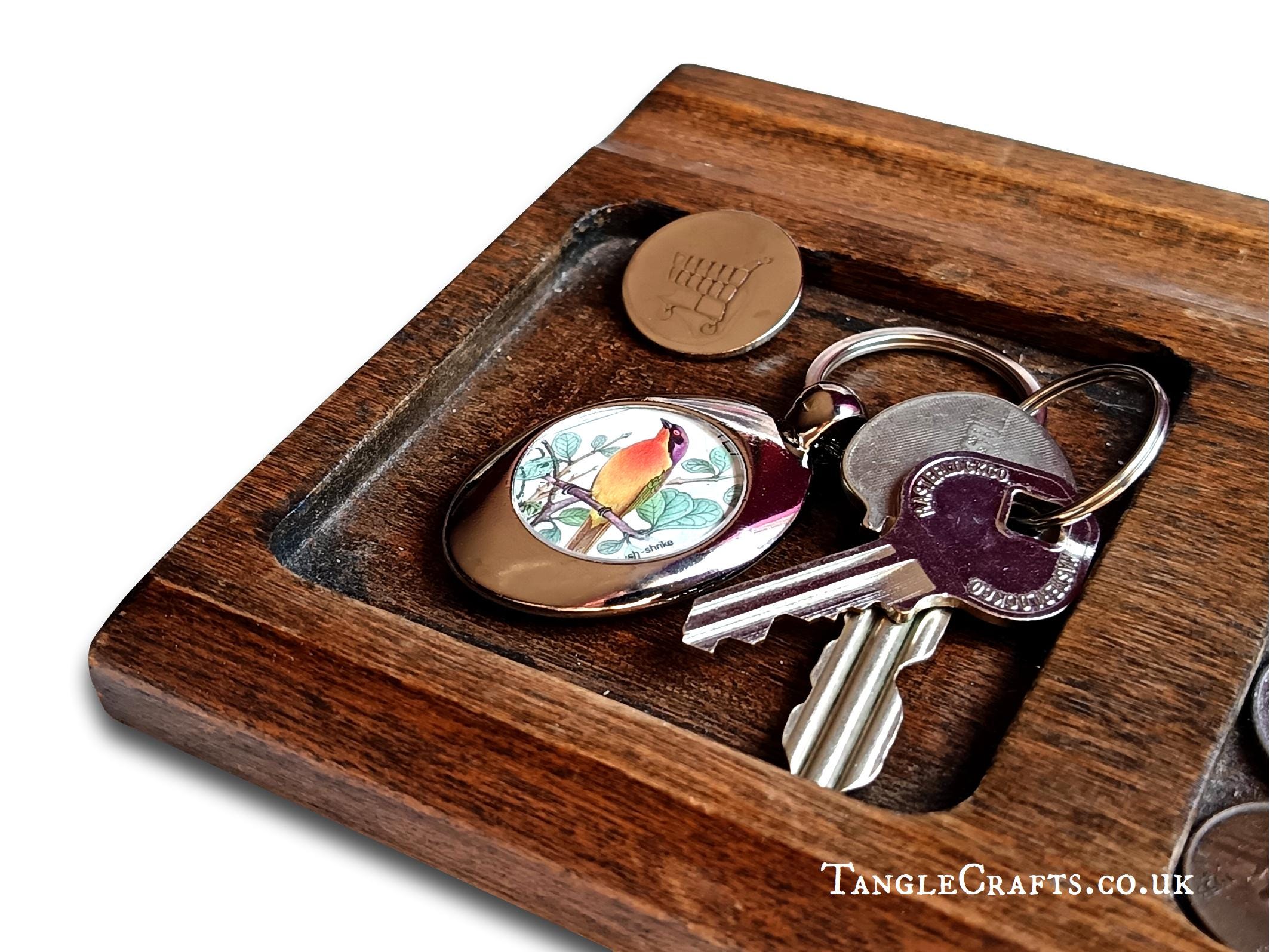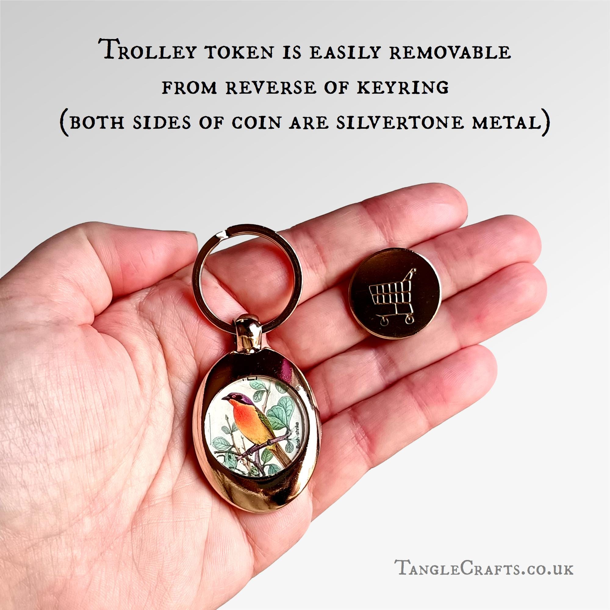 • The trolley coin is a solid metal disc measuring approx. 25mm diameter, silvertone on both sides. It is designed to fit both British & EU supermarket shopping trolley slots (if you are not in one of these regions, the token is unlikely to work but the keyring itself is still perfectly functional!)
