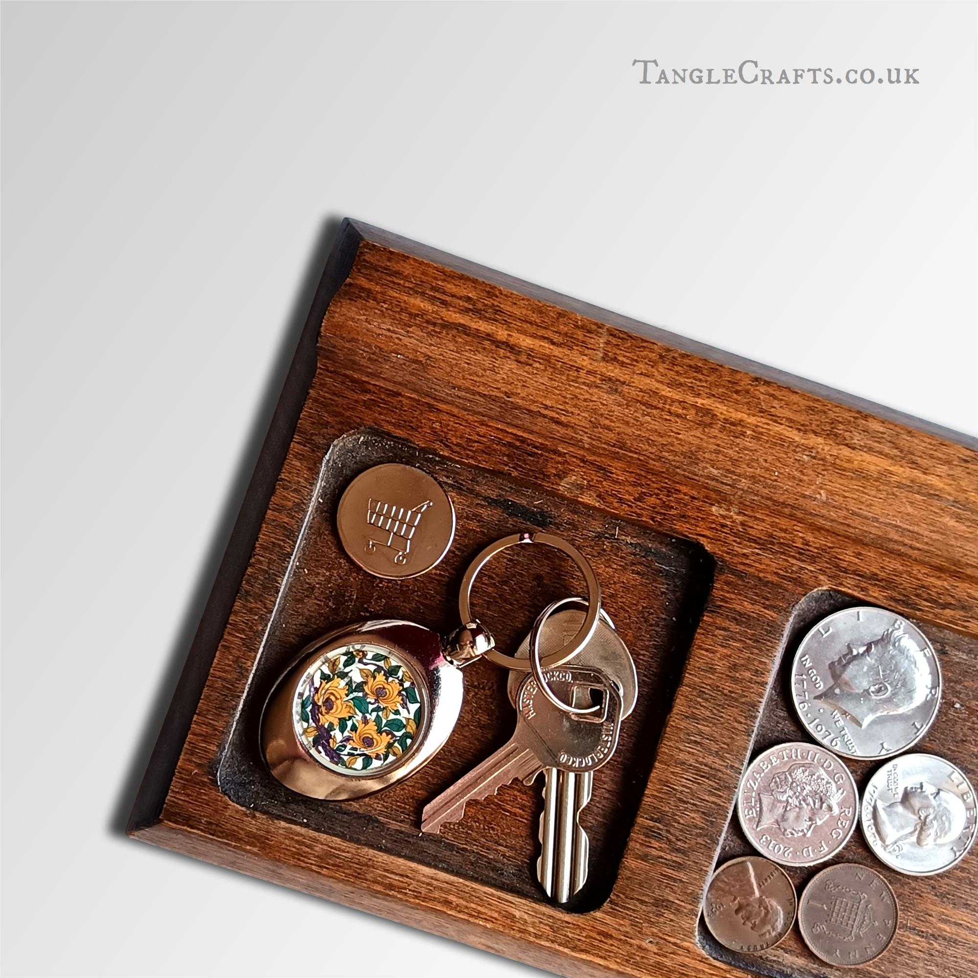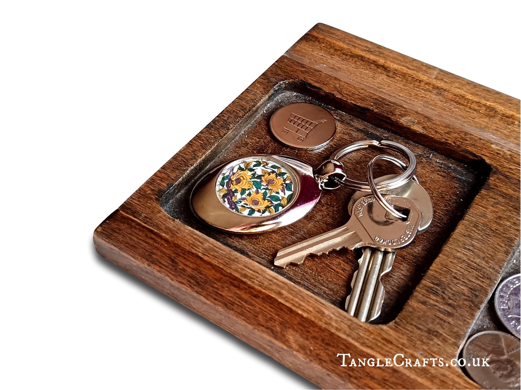 • The coin is set into the reverse of the keyring and lies flush.